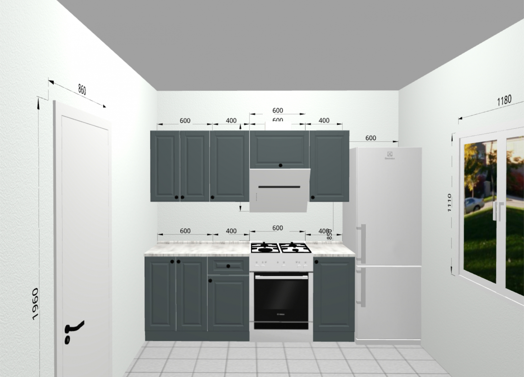 Высота шкафов: 718 мм.